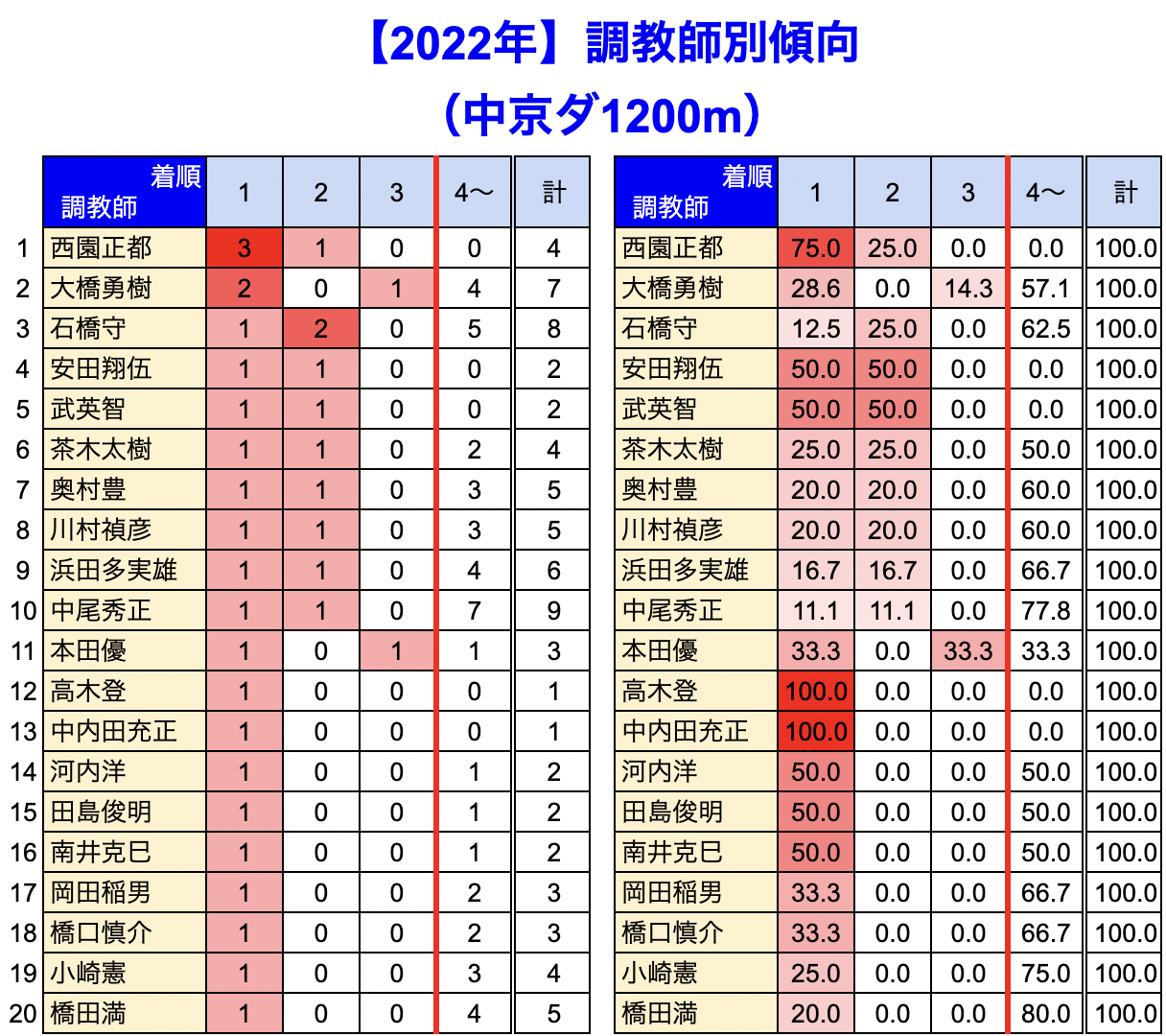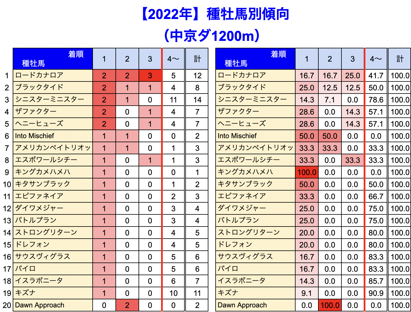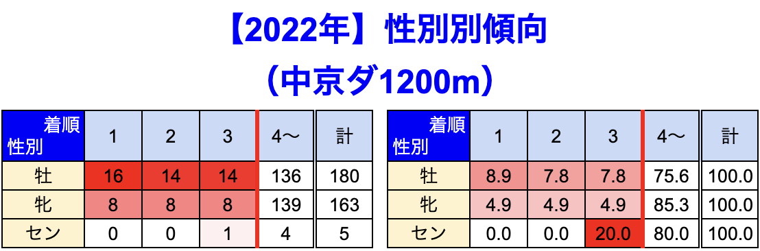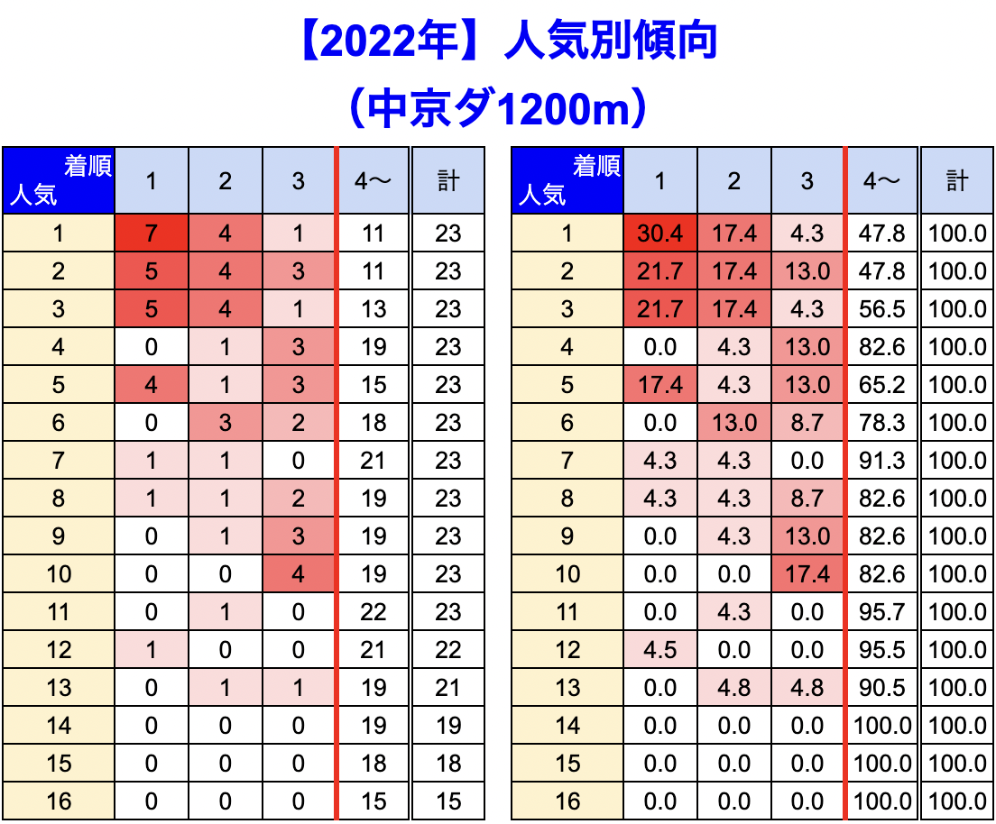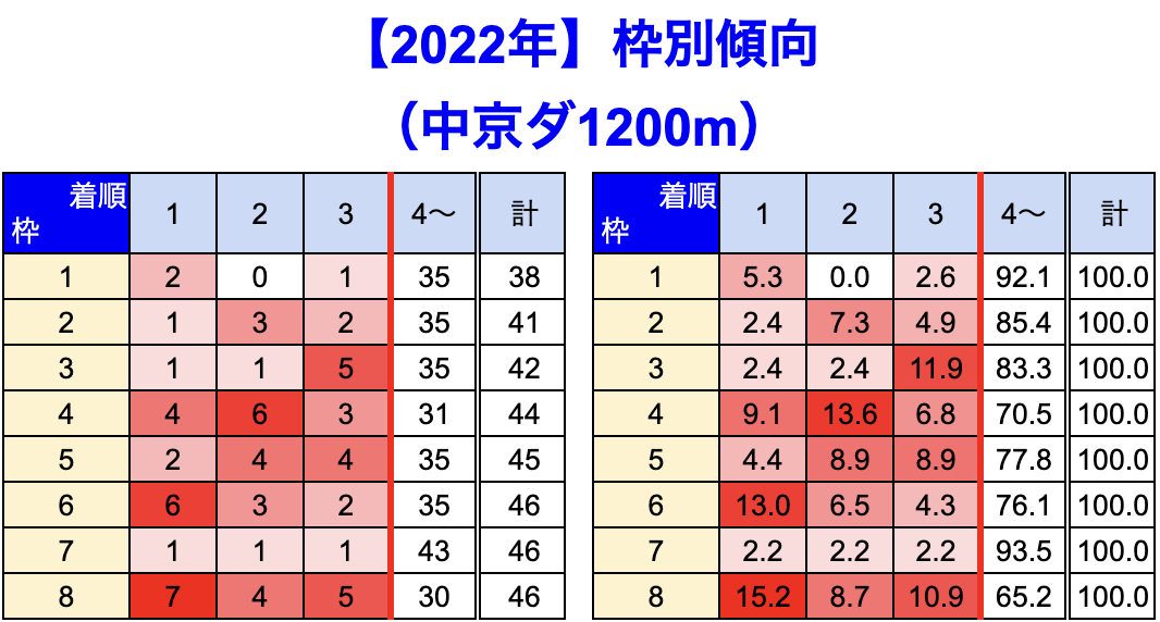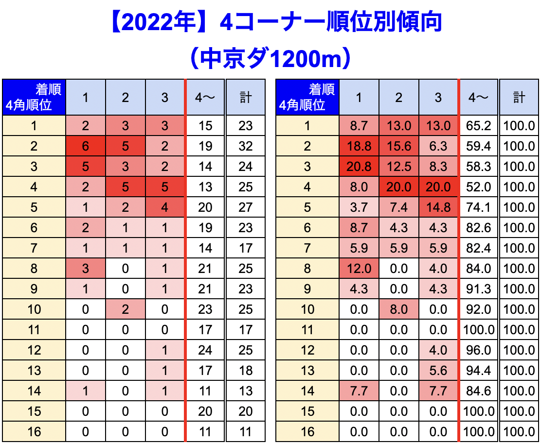 中京競馬場 の 1200m 戦を集計しています。