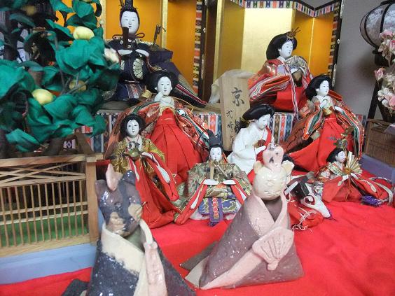 今日は桃のお節句この日にちなんで椿山荘ではつるし雛がたくさん飾られているらしい とりあえず確認のを入れる と・・・ 「つるし雛は2月28日で終了しました~」 ・ ・ ・ がび~~ん な・ん・で? 今日が桃のお節句なのに 今日なきゃ意味ないのに・・・ 今日見たかったのに・・・ブツブツ 「業者さんがその日に持って帰ってしまいましたので」 ・・・ ま、気を取り直して 我が家のお雛様がある! 手前の猫雛は以前に体験?陶芸教室で作ったものです うん! 立派なお雛様だっ