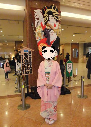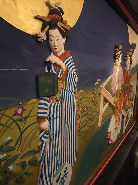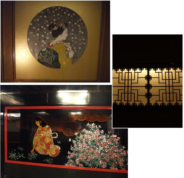 ふっくらとした横顔・・・こんな壁面彫刻がびっしりの目黒雅叙園ロビー階です花魁と桜の美女たちと・・・ご満悦な訪問着パンダサザエです。