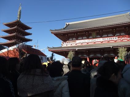 あちらをみても こちらをみても すっご~い人ひと人! この勢いでっ 不景気なんて吹き飛ばせ~~っ!! 本堂大営繕中の浅草は浅草寺 元日の混雑状況でした あ~・・・疲れたっ 夜になっても初詣客の入場制限は続く・・・