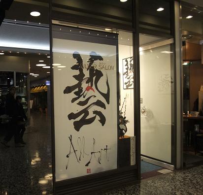 有楽町は東京交通会館にて 私の書の先生でもあります書家の山内 美鳳氏の個展が開催されていますくわしくはこちら 今回のテーマはオールアート書普通の黒墨だけでなく、このように絵具を使ったり作品によってはラメも使われるのが先生流 他にはお扇子に書かれた書、日本酒のラベルとなった書etc... そしてなんとっ デザイナーの桂 由美さんとコラボのウェディングドレス NYで開催された桂 由美さんのファッションショーで舞台上、モデルさんが実際に着ているドレスに直接、先生がおもむろに太筆で書を書いていくという凄いパフォーマンス そのショーの模様のDVDと実際のドレスも展示されていました。 純白のドレスにまるで何か、神聖な儀式のように静かにしかし躍動的に筆が進められていく姿はとても神秘的 とってもショッキングでした さてこちらは作品の一つでもありますお扇子をお買い上げしました “風”