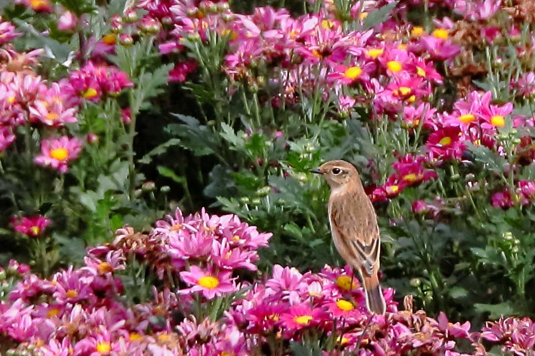 終盤の菊ノビ雨が止んだので10時頃から菊畑を覗いてきました二番菊が少し伸びてきて撮影できそうになりました肝心のノビタキが居るのか?探して5羽ほどあちこちにばらけていました