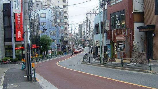 【ホームページを閉じるにあたり、2011年2月21日に掲載したものを転載した】【続き】 須藤公園からの狭い坂道から出た高台の住宅地には「千駄木三丁目7」の表示がある。角を二つほど曲がって南の方に歩くと次第に道は下って、マンションが多くなる。突き当たったT字路は、坂の途中のように見えるが、「団子坂上」交差点である。Photo S 団子坂の途中から不忍通りの方を見おろす。Photo T 団子坂下交差点からみる不忍通り(南方向)。 団子坂を下る。下りた道は、さきほど須藤公園に向かう途中で横切った不忍通りである。 不忍通りを根津神社まで行くつもりなのだが、大通りを歩くのはあまり楽しくないので横道に入ると、汐見小学校に出る。東側の道を歩いて南へ。ここにもソメイヨシノがあって、日本の義務教育制度は、ソメイヨシノを共生菌のように抱え込んでいるかのようである。 汐見小学校の南端を左折し、細い道を不忍通りに戻る。また南に下り、「千駄木2丁目」交差点を左折して根津神社に向かう。Photo U 不忍通りから西に入った汐見小学校前の道。Photo V Photo U の道を右折してふたたび不忍通りに戻る道。Photo W 不忍通りから根津神社北門に向かう道(千駄木本通り)。 根津神社は、シイの木のたぐいの大きな広葉常緑樹に包まれている。「根津神社」の大きな石塔、立派な鳥居をくぐるが、そこは正面ではないらしい。見通しの悪い道を折れて本殿の側面に出ると、スダジイの大木がある。この木は仙台には生えていない。暖地の広葉常緑樹である。スダジイをスダジイと認識して眺めるのはこれが初めてである。Photo X 根津神社境内のスダジイの古木。 知らない土地を歩いて、そこが旅先だと実感するような契機は色々だろうが、私の場合は花とか木、植生の場合が多いような気がする。職を得てすぐの頃、学会が開催される横浜国立大学へ向かう途中の坂道で、草むらの中にクサボケの花を見つけたことがある。横浜は仙台よりずっと暖かいのだと思った瞬間で、今でもはっきりと覚えている。しどめの花を家へもって行くと 火事になると子供の時分聞いていたが いかにも本当らしく いい花だったけれど取ってこなかった 八木重吉「無題」全文 [12] 「しどめ」 とはクサボケのことである。クサボケが自生しない仙台にこのような言い伝えはないが、園芸用としては入手できる。小物盆栽の素材として貴重で、ずいぶん前に育てていたが、いつの頃か消えてしまった。Photo Y 根津神社境内。 根津神社本殿前には二人の参拝者がいるだけだったが、楼門のある広い境内にはおそらく団体で来たものだろう、年配のグループが三々五々休んでいた(Photo Y)。12時30分を回ったところで、昼食弁当の時間だったのかもしれない。 楼門のある方向が正面の参道だろうと、南東端の鳥居をくぐってふり返ると、その鳥居も「根津神社」の石塔も、北入口のそれとほとんど同じなのであった。表とか裏とか、ないのかもしれない。 根津神社を出て、ふたたび不忍通りへ向かう。その道の途中、「根津の名の由来には、ねずみのいわれ、台地の根にあって舟の泊まるところなどの各説がある」という旧地名由来の看板があった。民間伝承、単純な国語学、などいろんな人がいろんなことを言い、どうにもならんという風情である。Photo Z 根津神社南門から不忍通りへ向かう道。 不忍通りに出ると、そこの交差点は「根津神社入口」である。つまり、いま出て来た方が表の参道ということだろう。少なくとも東京都公安委員会は公然とそうだと教えてくれているわけだ(このような道路標識は公安委員会の管轄だったと思う)。 その「根津神社入口」交差点脇に日本そばの店があって、そこで昼食とした。Photo ZA Photo Z の道を出てすぐ、不忍通りにあるそば屋さん。ここで昼食。 昼食を終えて、そば屋さんの脇の道を北東に歩くことにする。街灯に「八重垣謝恩会」と「文豪の街」という看板がぶら下がっている根津神社から続く通りである。謝恩会というのはなんだろう。街灯には商店会の看板が普通のように思うが、同じようなものか。根津神社の神恩に感謝している商店会、というのがもっともらし想像だが、確かではない。 「文豪の街」というのもすぐにはピンと来なかった。日本で文豪といえば漱石か鴎外である。地図で「本郷図書館鴎外記念室」とあるのを見つけ、森鴎外のことだろうと思った。 これは後日のことだが、鴎外が千駄木で暮らしていたのだと知ったが、これはこれで悩ましいのである。当の通りがあるところは根津である。千駄木と一緒にして良いのか。私のような地方人には東京といえばみんな一緒のようなものだが、東京人の郷土意識の広さはどの程度に及ぶのだろう。 さらにあとで知ったのだが、夏目漱石も千駄木に居を構えていたのである。どちらの千駄木がより根津に近いかは知らない。この「文豪」が複数形であって、漱石と鴎外ともに指しているのなら、なんと豪華なことだろうとは思う。 こ
