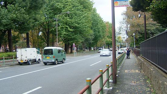 【ホームページを閉じるにあたり、2011年2月23日に掲載したものを転載した】 不忍通りを南に下ると横山大観記念館があって、ツワブキの咲く落ち着いた庭が見えたが通りすぎてしまった。今になって少し後悔している。 「不忍池西」交差点を右折すると、旧岩崎邸の裏の坂道に入る。無縁坂という。坂の上にあった無縁寺という寺に由来すると、坂下の看板に説明がある。森鴎外の「雁」の主人公が散歩した道で有名だともあったが、読んだのはずっと昔のことで私には記憶がない。散歩の道に、いくつか良い坂道を持っていることは大事なことだ。必ずや心静もる石畳この伸びやかな坂を登れば 道浦母都子 [1]Photo A 旧岩崎邸庭園裏の無縁坂。Photo B 無縁坂を上り、旧岩崎邸庭園に沿って左折した道。 無縁坂の道の片側は石垣と塀で、上りきっても塀が続いている(Photo B)。その塀の終わりを左折する。つまり、旧岩崎邸に沿って反時計回りに歩いた。その道には当然のように三菱資料館があって「三菱の歴史がわかります」 と謳ってある。 なんか、きちんと当たり前なのであった。 文京体育館プールを過ぎてからまた左折すると、道と旧岩崎邸の間に道に沿って公園がある。その公園は、右に折れる道に沿ってずっと続いている(Photo C)。 この道を出ると春日通りで、切通坂の途中である。Photo C 旧岩崎邸庭園を反時計回りに歩き、春日通り湯島天神前に出る細道。Photo D 湯島天神境内、菊花展。Photo E 湯島天神南の道。「湯島中坂上」交差点付近から湯島天神を見る。 「湯島天神入口」交差点から湯島天満宮に向かう。境内では菊花の展示会が開催されていて、豪華な菊の花々が目を引く。日本の園芸独特の鑑賞法だと思うが、私が菊に持つイメージとは異なる。 籬あり菊の凭るゝよすがあり 高浜虚子 [2] しら菊の目に立てゝ見る塵もなし 松尾芭蕉 [3] 去る人と知らず小菊に文を書く 長谷川かな女 [4] 私が好きなのは、小菊であり、乱菊であり、籬の菊である。琳派の描くような菊なのだ。 湯島天神の鳥居からまっすぐに伸びる道に出て、湯島小学校のある道へ右折する。小学校以外は、マンションなどの集合住宅と小さなオフィスビルの続く道である。まだ確信はないが、東京ではこのような道が標準的で特徴のない道なのではないかと思える。 道なりにまっすぐ進み、突き当たりになったので右折し、春日通りに出る。春日通りを西へ、本郷に向かって歩く。Photo F 湯島小学校北側の道。街歩きMAP 青線は歩いたコース。A〜ZHの赤矢印は、写真のおおよその撮影地点と撮影方向を示している。地図のベースは、「プロアトラスSV4]である。歩行軌跡は、「GARMIN GPSMAP60CSx」によるGPSトラックデータによる。Photo G 春日通り、「本郷3丁目」交差点。 春日通り「本郷3丁目」交差点に出る。この交差点は見覚えがある。東大に出張の時、地下鉄を降りて地上に出て来た場所である。どちらに歩いて行けばよいのか、しばらく周囲を見回していた場所なので、記憶に残ったのだろう。 当然ながら、ここを右折した本郷通りを歩いたはずである。 本郷通りに入ったが、東大方向は避けて、すぐ左折して菊坂通りに入った。そこには、「文の京 一葉文学のまち」という案内板があって、樋口一葉が記した文章と対応する本郷近辺の地点を示している。読み始めたのだが、文章が多いのですぐに諦めた。相変わらず、私には文学者の足跡とか遺品とかへの関心が薄いのである。Photo H 菊坂通り、東端から。 菊坂通りを3分の2ほど進んだ十字路の左手を覗くと、菊坂通りに並行する細道(Photo I)が下っていくのが見えて、そこに入ることにした。本当に狭いが、長い道である。 道の脇、軒下、塀際にはたくさんの緑が張り付いている。狭い庭に花を植えて四苦八苦している私には、植物の配置、組み合わせなど、見ているだけで楽しい。真似てみたいやり方もいくつかある。Photo I 菊坂通りに平行に走る細道入口。Photo J 菊坂通り脇の細道。 150mくらい進んだころ左手に路地があって、なんとなく見覚えがある気がした。奥に階段があって、民家の2楷がその上にせり出しているのである。そうなのだ、これはテレビでいつか見た樋口一葉が暮らしていた路地なのだ。そうであれば、右手奥に井戸があるはずだが、隠れて見えない。かといって、その路地に入ることはためらわれた。ここには暮らしている人々がいて、その庭前に入り込む感じがして、それは不作法だという思いがするのである。親しい仲にも秘密がある。ひとの秘密には手を触れてはいけないのだ。それが生まれそだったゆきどまりのちいさな路地のおしえてくれた、ひとの暮らしの礼儀だった。 ……〈中略〉…… どんなちいさな路地にさえ、路地のたたずまいには、どんなひろびろとした表通りにもないような奥行きがある。ひとの暮らしのもつ明るい闇が、そこにある。 長田弘「路地の奥」部分 [5] 適当な距離を歩いて、左手の高みを並行する菊坂通りに戻った。さて、これからどちら