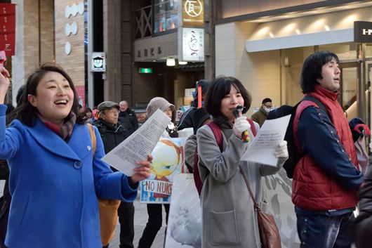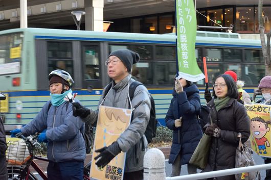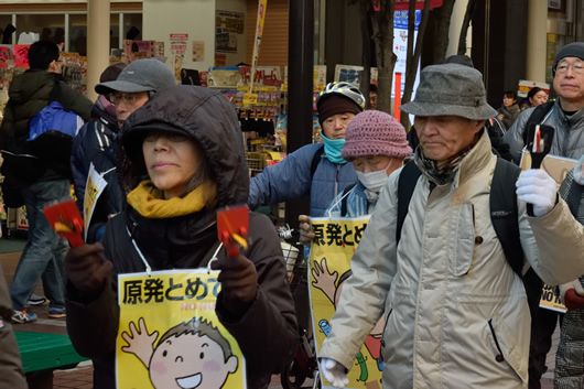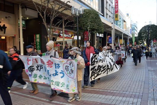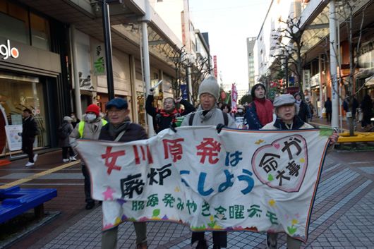 デモが終わって20人ほどが残り、新年会が開かれた。話題は、規制委員会が女川原発に対して新規制基準適合という審査結果を出すと思われる今年が大きな山場になるだろうという話題が中心だ。