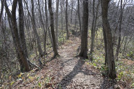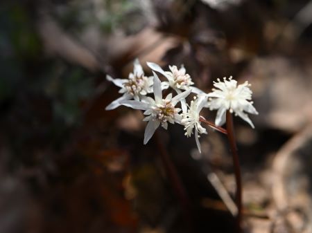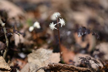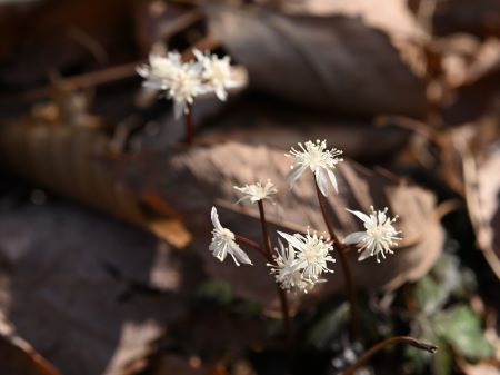 残念ながら、咲いている花は小さなセリバオウレンだけだった。冬山には登らなかった私の年の初めの登山で見る花はいつもセリバオウレンだった。同じ時期にカタクリの花も見ることがあったが、今日は葉だけのカタクリだった。仙台の春は、いかにも遅いのである。鳥も二度ほど鳴き声を聞いただけで姿を見ることはできなかった。