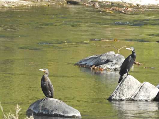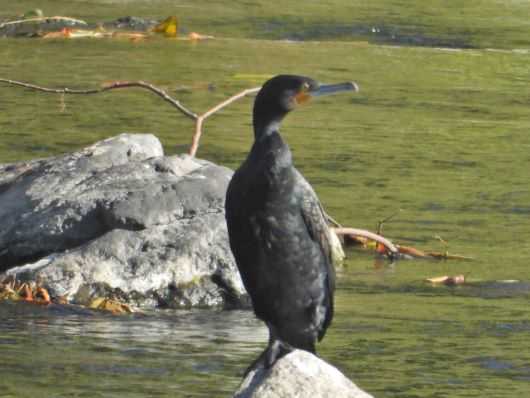 川内緑地という河川敷公園の最下流部から石の上にいるカワウを見つけた。三脚に固定したカメラでカワウを覗いて観察していたが、いっこうに動く気配がない。いくらシャッターを押しても同じポーズしか取れないのである。三脚に乗せたカメラを覗いているだけなので体にはいっこう負担がかからないのでけっこう長いあいだ見ていることができるのだが。