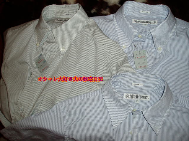 某所でのアウトレットセールで、またまたINDIVIDUALZED SHIRTS(半袖)を2枚買って来ました。右手前は、以前ご紹介した物で、右奥の物とまったく同じ物です。¥17640 → ¥10000 でした ~ 楽天で買える INDIVIDUALZED SHIRTS ~INDIVIDUALIZED SHIRTS(インディビジュアライズドシャツ)インディビジュアライズドシャツ スリムフィット ロングスリーブ ボタンダウンシャツ0711お得10/INDIVIDUALIZED SHIRTS(インディビジュアライズドシャツ)/L/S SLIMFIT B.D. oxford shirts/ white2PLYのCAMBRIDGE OXFORDです。INDIVIDUALIZED SHIRTS[インディビジュアライズドシャツ]OX Slim Shirts※「オシャレ大好き夫の観察日記」はランキングに参加させていただいております※↓この中で、お好きなものをどれかひとつでもいいのでクリックしてね↓それから、こちら↓もクリックしてね人気ブログランキングへ最後にこちら↓もクリックしていただけたら、嬉しいです 当サイトにて紹介しております商品のお問い合わせは、直接販売店におたずねしていただきますようお願い致します。ご利用・ご購入に関しましては、リンク先の販売店となります。お客様の責任においてご利用いただきますようお願い致します。商品によって、売り切れの場合もございます。