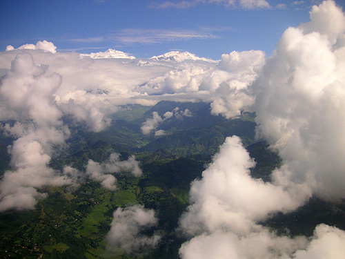 ↓ヒマラヤ上空ポカラからカトマンズに向かう小型機から(ネパール)異国情緒あふれる写真と旅行記|KaycomDESIGNより ネパールを訪れたときカトマンズ⇔ポカラ間を小型機で移動しました。私たちが乗った飛行機は20人乗りくらいの小さなものでしたが、現地のガイド曰く、「新車」だそうです。出発まで待っていると、新車ではない機が一足先に飛び立ちました。そしてその20分後、私たちを乗せた新車が離陸。すばらしいヒマラヤの景色を眺めながら、無事カトマンズへ到着しました。荷物を待っていると、さきほど私たちの前に飛び立ったはずの乗客たちが、私たちより後に空港へ入ってきました。どうやら上空で追い越したらしいのです。さすが新車…でも、飛行機の追い越しってありなのか…今でも疑問です。
