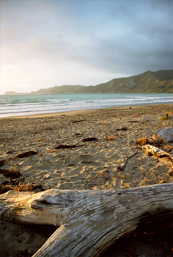 ↓地の果てたまたまたどり着いた不思議な空気につつまれたトコマルベイ(ニュージーランド)異国情緒あふれる写真と旅行記|KaycomDESIGNより はじめてその町に行ったとき、「地の果て」だと感じました。今でも思い返すと、本当は幻だったんじゃないかと思うほど異次元のような不思議な空気に包まれていました。そこは、行くつもりで行ったのではなく、着いたところがそこだったという感じで、偶然出会った場所です。山を越え、その町に入ると、家はまばらにあるものの、人の姿もなく、気配も感じません。今夜の宿を探しましたが、一軒も見当たらなかったので諦めて町の端まで行くと、白い砂浜のある入り江に出ました。時刻はすでに夕暮れ時、うっすらともやのかかったその場所にはオレンジ色の夕日が差し込んでいます。今夜はここに寝ることにし、浜辺に小さなテントを張りました。暖をとるため、小枝を集めて火を焚いていると、少し離れたところにマオリ(NZの先住民)の家族を発見しました。彼らも火をおこし、料理をしています。向こうもこちらに気づいたようで、しばらくすると子供たちがやってきました。ちょっとはずかしそうに、はにかみながら大きな目で私たちを見上げるとはい、どうぞと、料理のおすそわけを差し出してくれました。ありがとう!向こうにいる、お父さんとお母さんを見ると、にこにこしてこちらを見ています。手を振ってお礼を言い、ありがたくいただきました。村の様子から見ても、決して裕福とはいえないでしょう。しかし、突然やってきた見ず知らずの外国人に、自分たちの大切な食料を分け与えることができる…豊かだな~あったかい気持ちにさせてくれた夢のようなひと時でした。