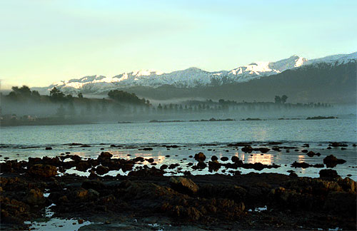 ↓朝もやの海岸(ニュージーランド)異国情緒あふれる写真と旅行記|KaycomDESIGNより ホエールウォッチングで有名な、ニュージーランドのカイコウラ。持参したクレジットカードの期限が切れたのが判明し(出国前に確認しましょう)、新しいのが日本から届くまで数週間滞在していました。宿の目の前は海。といっても砂浜ではなく岩場です。なんにもすることがないので、ちょっとその岩場を歩いてみることにしました。潮が引いていたので、海草やらなんやらがたくさん打ち上げられています。そんな中、ひときわ目をひく見慣れたものが…ウニ?一個や二個ではなく、ゴロゴロとたくさんころがっています。あんな高級食材が、こんなところにころがってていいものだろうか…じゃっかんの疑いを持ちながらも、せっかくだしと、持ちかえって食べるみることにしました。さっそく、ワクワクしながら割ってみると、黄金色に輝いているはずの身が、くすんだ緑色をしています。…私の知ってるのと違うでも、かたちはまったくのウニなので、きっと、ニュージーでは緑色をしているんだろうと自分に言い聞かせ、おそるおそる一口食べてみました。まずい…とても食べれたものではありません。残ったのをすみやかに海へリリースし、ひとりウニバイキングの夢は、あっけなく消えてなくなりました。いったいアレ(もうウニとは言わない)はなんだったんだろう…?
