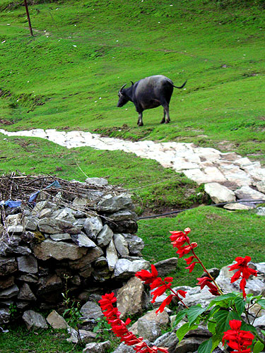 ↓ヒマラヤの牛と花雷に遭遇した村(ネパール)異国情緒あふれる写真と旅行記|KaycomDESIGNより 最近、雷がすごいですね。雷と言えば思い出す、あの悪夢のような体験…ヒマラヤをトレッキング中に訪れた小さな村で、私たちは雷に襲われました。標高が高いため、上空を雲が通り過ぎるというのではく、どんどん近づいてくる雲に取り込まれるという感じです。その雲がただの雲ではなく、雷付きのだとどうなるか…ゴロゴロ鳴ってるなと思ったら、あっという間にあたりが暗くなり、激しい雨が降り出しました。今まで歩いていた登山道はものすごい濁流の川となり、窓ガラスが振動するほどの雷鳴が響き渡ります。閃光が光を放ち、いくつもの稲妻が地面をたたきつけました。まるで地獄絵図です…おさまったかと思うと、またすぐ次の雲がやってきて、まるでカーテンコールのように何度も何度も繰り返されました。次の日、同行していたシェルパのみんなに話を聞くと、「自分達の目の前に3回も雷が落ち、びっくりして外に飛び出した」(←そっちの方が危ない)と興奮しながら言っていました。雷雲の中の世界は、一生知らなくてもよかったかもしれない…この時期になるとよみがえる、夏の懐かしい思い出です。