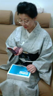 誕生日を一緒にお祝いしてくれて、何も出来てないカヨコの身の回りの世話をしてくれたママにカヨコからプレゼントそろそろ機種変の時期だったので、NEWらくらくホンをプレゼントしてみましたちょうどCMでもやってたし。でも・・・「歳」云々じゃなくて機械音痴なママ。ご覧のように見つめるだけ・・・(^^;) でも今までもこのFの機種だし、ちょっと設定してあげるとすぐ覚えようとカチャカチャし始め・・・ワンセグ機能にキャッキャっ言ってました「どこにいてもナマイキを観ろってことね!」って。(笑)はい。ワンタッチダイアルはもちろんカヨコとパパ。ほんっと毎日電話するので、家族間通話無料になってほんっと良かったドコモさんありがとう。(無料にならなかったら本気でナンバーポータビリティーを考えたよ・・)と、いう事で、喜んでもらえましたあ、びっくりしたのが万歩計が付いていたこと!今の「らくらくホン」ってすごいねらくらくホンプレミアムってやつでした