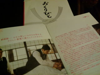 12時過ぎてるのに食べちゃった(T_T)インスタントラーメン… (さっぽろ一番とんこつ)だって…今日は夜ラジオ生放送→その後来週分の収録、そして九時から試写会と夕食を食べる時間がなくて(T_T)さっきお家着いて我慢できませんでした(T^T)あ~ぁ…今夜観た「おくりびと」すごく良かった…。泣いた。大切な人を‘おくる’時、自分がおくられる時、私も小林大悟(本木雅弘)や社長(山崎努)に綺麗な姿でお別れできるようにお願いしたいな‥って思った。夫婦で、家族で、大切な人と観てほしい映画です。詳しくは映画コーナーで‥