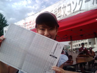 みんなはもう観戦感想文きましたか~??カヨコは昨日書いてきました「夏休み、 あ~夏休み。」(※本来は小学生の皆さんが対象です)31日までのイーグルスの試合を観てその感想を200文字~800文字の作文にして提出してください先着8000名にはこのイーグルスキャップをプレゼント昨日もたくさんのお友達が書いてくれましたよ(「宿題の読書感想文は全然やらないのにこの子ったら・・」って親御さんはグチりながらも嬉しそうにしてました)最優秀賞や選手賞に輝いたお友達には、試合前のフィールド上で表彰式がありますまだのお友達がいたら、是非観戦感想文コンクールに応募してみてね