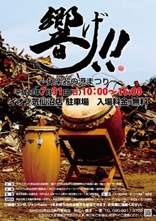 明日 7月31日 (日)気仙沼イオン駐車場にて響げ!打楽器の港まつりが開催されます。今年はみなと祭りが中止になってしまった気仙沼。「祭り」は本来身を清め、供物をささげて祈願・感謝・慰霊などを行うもの。大昔から「まつり」はどんな状況でも行われてきた。だからどんなカタチであれお祭りをやって欲しかったと思っていました。気仙沼の祭で聞く、和太鼓の音色。例年は一千基の太鼓で大競演を内湾で行ってきました。海潮音、うんづら舞、安波囃子・・・港町独特のリズム。大好きです。明日は和太鼓だけでなく様々な打楽器や、よさこい、オ―ケストアetc・・ある様です。司会でお手伝いですが、実はまだ詳しく知らされていません(^^;)私もその場の雰囲気を楽しんで来ようと思います。皆さんもぜひいらしてください