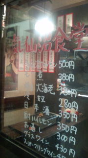 仙台に居ながら、気仙沼を感じる事の出来る気仙沼大使:岩手佳代子お薦めのお店をご紹介!先日オープンした気仙沼食堂です。一番町4丁目の通称ションベン横丁の中にオープンしました気仙沼ホルモンや、気仙沼に水揚げされたカツオ等がメニューに並びます。なぜに、気仙沼を堪能できるのかというと、オーナーが気仙沼の鹿折出身だからです。他に、炭火焼&シャンパンの店 『チャコール バル ジュ』やレストランバー『ル・シエル クレム』をなど有名店を経営している梅津さん。今回の津波で生まれ育った家を失ったそうです。昨日、連れて行ったお店が偶然にも、行こう行こうとユミさん話していた気仙沼食堂。ひと足早く抜け駆けしてしまった(^^;)で、2軒目だったこともあり、(酔っており)気仙沼ホルモンや店内の写真を1枚も撮ってませんでしたぜひ、みなさん【食べて支援】気仙沼食堂行ってみてください♪ただし、梅津オーナー自ら一人で切り盛りするお店。なんと土日がお休みです。※お気を付け下さい!気仙沼の日本酒もしっかり揃ってます
