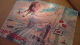 ジブリの最新作、【コクリコ坂から】の試写会から帰ってきたところです。来週、監督インタビューがあるので、一足早く観てきました。感想は‥「ちょっと難しい‥」かな。背景はオリンピックの前の年。高校生の女の子と男の子が主人公。私の過ごした高校時代とはかけ離れているし、文学的だし“分からない時代”。でも、これを今の子が観てどんな感想を持つのか楽しみ。中途半端に時代背景が分かる私達の年代より、真っさらな頭で見たらどんな感じなんだろ♪そして団塊の世代の方が観たら、きっと共感し懐かしく思うのでは。今、家に帰ってストーリーを回想してみると、観た直後より内容が見えてきた。今の時代では得られない温かさがこの物語の中にはいっぱい。監督からどんな話を聞けるか楽しみです。と、今日はフルで働いた‥。午前中は銀行回りや打合せ。午後はラジオ収録二本分。その後資料作成、配布、また資料作成‥そして試写会。あ、でも日の出とともに行われる「採蜜」は欠席しちゃったからな‥。“フル”には働いてないか‥。m(_ _)mそう!そしたらさっき鼻血が出てびっくり!何だかなぁ~。ちょっと一杯呑んでから寝ます!