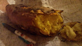 さっき、香りに負けて買っちゃいました(*⌒▽⌒*) 【焼き芋】!!! しかも出てきた焼き芋は、ごらんの通り、直径10センチ、長さ25センチはあろうかというbig芋Σ( ̄□ ̄)!今夜は寝ながら オナラぷっぷ かしら(≧∀≦)