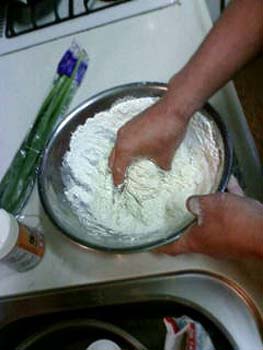 手打ちうどんづくりに凝りだして約1ヶ月。今週も訓練(?)を兼ねて作ることに。今回は友達の「こなきさんファミリー」を招いて 「第1回手打ちうどんパーチー」を開催することに。(笑僕は今回が4度目の挑戦になるが、まだまだ修行中の身。とても講師にはなれず、レシピ通りのウンチクをもっともらしく言い回し(笑)、うどんづくりスタート。もちろん材料はコレ。 だんだんと手際も良くなってきて、時間も短縮してきたvうどんづくりをしているさながら、たかちゃんのカメラ繋がりの「カツオ氏」とたかちゃんはカメラ講座開催。(うどんをつくっていたので写真はないヨン♪)夕方うどんが出来上がると、たかちゃんが作っておいた料理とで夕食会。 肝心の「うどん」の写真撮るのを忘れた。。。普段はたかちゃんと2人で食べているので、たまには大勢で食べるのも美味しいもんです。この後も晩9時頃までみんなでマッタリしながら楽しい時間を過ごした。次はいつやろうかの?(笑
