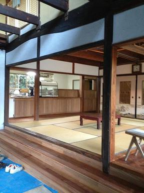 「風のえんがわ Cafe」のオープン予定まで、あと2日内装工事や様々な検査も終わり、カフェとして1期工事が完成した「風のえんがわ」風のえんがわは、普通のカフェとはまったく違います!!子供達を連れて、カフェや食事に行ったとき・・・子供達がじっとしていない・・・・子供達を連れて行くと、気になってゆっくりと食事ができない・・・「風のえんがわ」は、そんな心配はご無用!!是非子供連れで来てください!!実は、「風のえんがわ」は小さな子供達もスタッフです(笑)ヤギで散歩をしたり・・・季節になれば、ブルーベリーを摘みに行ったり・・・子供達のガイドで子供達が遊びます。カフェの庭で飼っている、鶏達も子供達になついて・・・もう少ししたら、卵も採れるのではないのでしょうか??卵が採れたら、採れたての卵で料理なんても、子供達は喜ぶこと間違いなし!! 風のえんがわに来るお客さんの中には、自然を知り尽くした先生がたくさんおり・・季節になったら野イチゴ狩りなどにも連れて行ってもらえることでしょう・・・子供たちは、その場で出会い、その場で遊ぶ・・・父親達は、子供達の遊び場を一生懸命作る(笑)・・・現在、ここに子供達が喜びそうなツリーハウスを建設予定!!奥様方達は、父親と子供たちを外で遊ばせている間・・・のんびりおしゃべり、読書・・・・などなど・・・そして、しっかり遊んだら家族で食事!!年末の忘年会や、地域の集まりなど・・・お父さんだけ・・・大人だけということが多いですが、是非、子供連れでワイワイ楽しんで下さいね。夜の部は予約制になっておりますので、年末のご予約はお早めに・・・