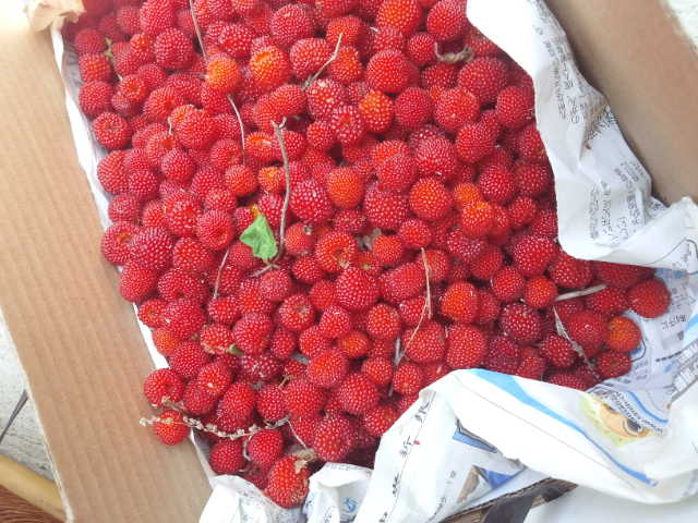 たくさんの野いちごが収穫できました! 同じのいちごなんですが実が長細いのやら、ひとつひとつの粒が大きいのや、何種類がタイプがあるし、また何粒もあらいながら仕分けしていると、どんなが美味しいか、酸っぱさや甘さのバランスがよくわかってきました。5才の娘は野いちご博士のように自身満々で、「これは絶対すごく美味しいからたべてみんさい。」と言って食べさせてくれては得意気です。