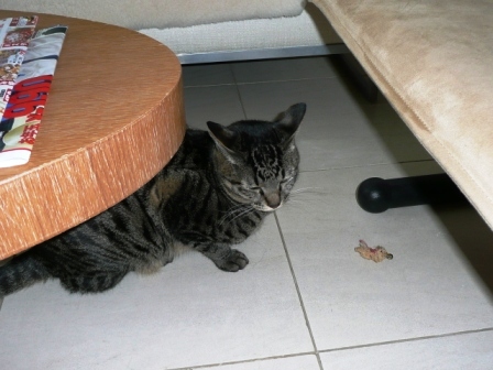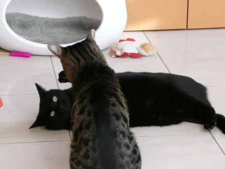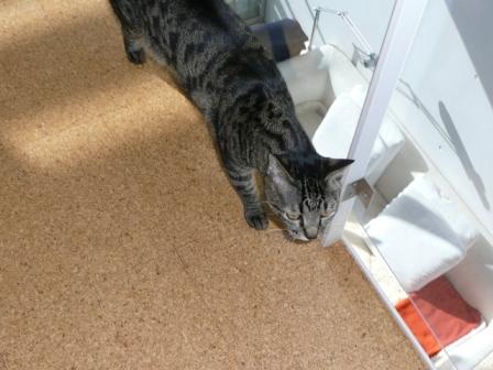 寒波到来の最中のバーベキューパーティー。極寒を覚悟していましたが、天気予報とは違って晴れたので、南向きのテラスは暖かかったです^^男性ばかりの友人5人とダンナさんと私。7人でバーベキューの後はお部屋に入っておでんパーティーが夕方まで^^まぁ、よく食べてよく飲みましたー。(私はあまり飲んでいませんよー)で、ウチのコたちは、例によって気配を消してました。友人たちは、「ホンマに猫、いるの??」「まったくいる気配がない。。」忍者だったらすごい褒め言葉なんでしょうけど、もう少し出てきて愛想すればいいのに。。友人たちが帰った後、例によって厳しいチェックを入れるコロタ。大丈夫そうだにゃん。。まだまだビビってるブーン。。