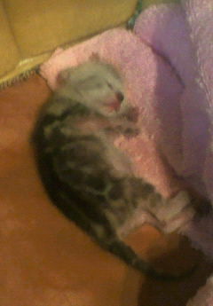 実家にいる(メグ♀とシルバー♂)の 赤ちゃんが今日産まれました~~~ (ノ゜o゜)ノ オオオオォォォォォォ-♪ メグよく頑張った!!! 1匹は・・・残念ながら死んでたんだけどね・・・。 もう1匹は元気に「ミーミー♪」って鳴いてます♪ まだ産まれるんかなぁ~・・・ なんか感じ的には、まだ産みそうだったんだけどさ。 今日実家に行ってじ~っと赤ちゃん見てたんだけど かわええ♪(⌒-⌒) ♀だったら名前は「くーちゃん」で♪(ぁ 飼うならあげるよ♪ってママ言うてくれたんだけど チワワ欲しいしなぁ・・・・ (ぁでも、大好きなメグとシルバーの子だしなぁ・・・ ま、月2回帰るからその時遊べたらええかなぁ~っと 思ってみたりw てか、ここまでくるのに長かったよなぁ・・・メグは、ノラ猫に恋をしたのよね叶わぬ恋を経験したんです<メグメグは家の中だけで飼ってるので・・・・ 網戸越しに、お見合いしてはったんです。それから何ヶ月間メグは、その場所でじ~っと相手を待ってたんだけどさ。お相手現れなくなったのよねぇシルバーが来る前に子供欲しいからコテツって言う男の子を借りてきたんだけど全然あわなかったし・・・シルバーとも喧嘩しまくって・・・・・やっと・・・・結ばれたんだシルバーの根気強さがよかったのかしらねw てか、もっと産まれるかと思ったんだけど2匹だしねぇ・・・・シルバー・・・・・種が・・・(以下略ま、ま、ま、メグママお疲れ様でした