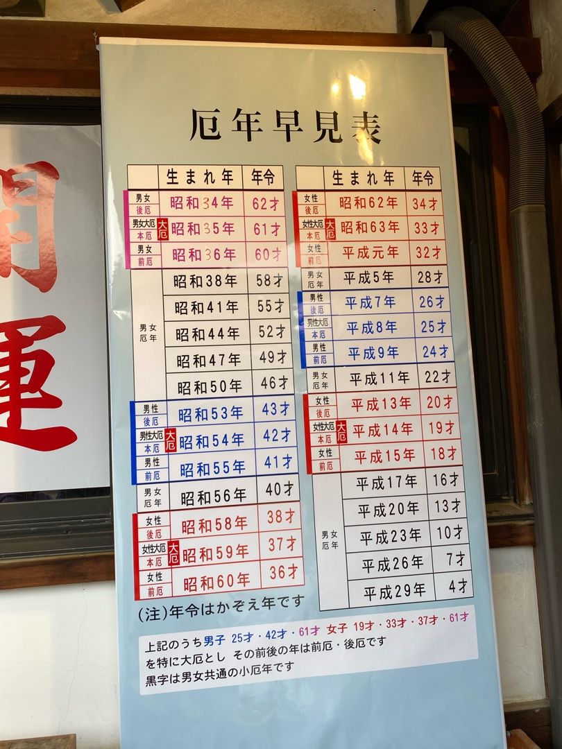 今年の厄年の人の表がありました