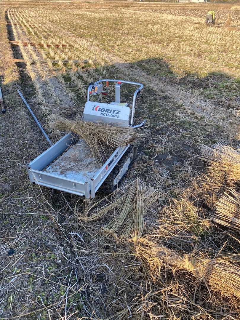 もう、かがんではワラをあつめ、くくりとりあえずおくをくりかえし、全部くくったら