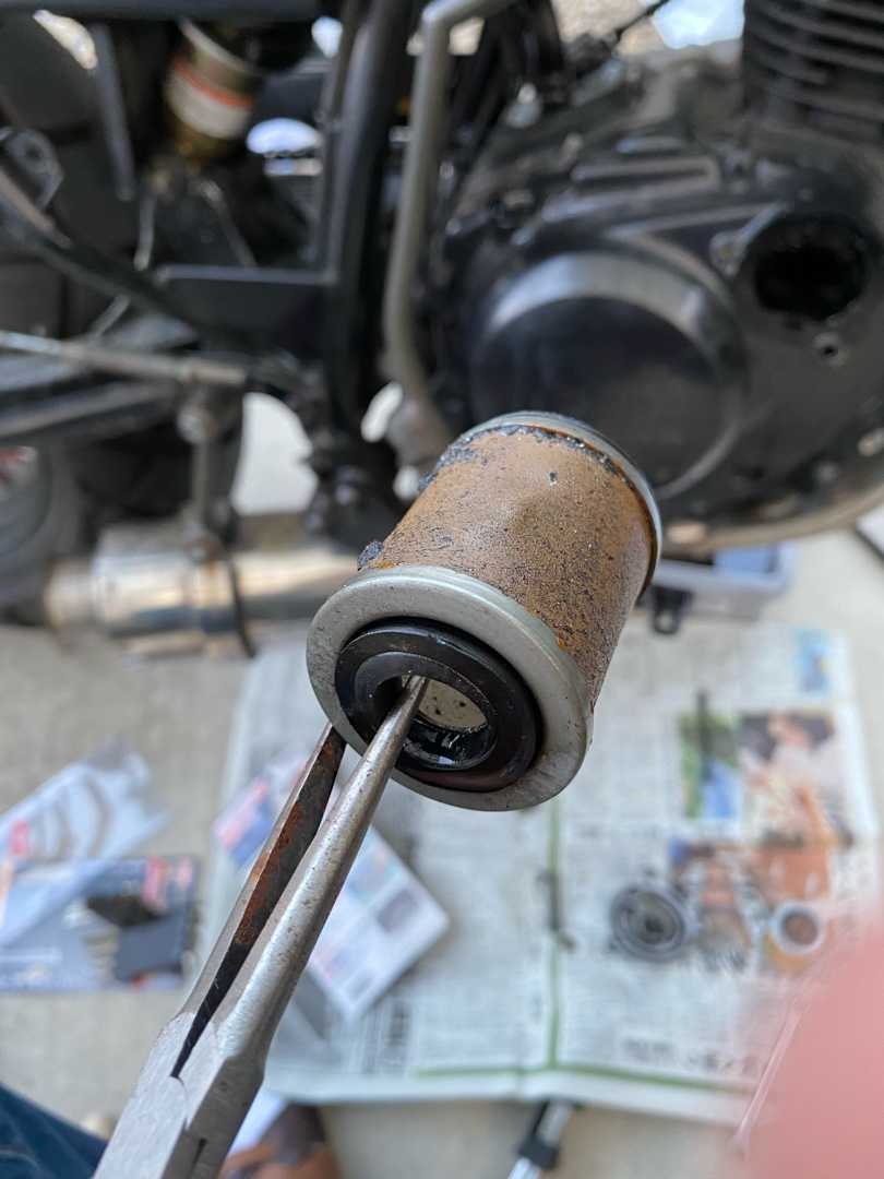 バイクのオイル交換とグリップのキャップ加工して無理やりいれました。