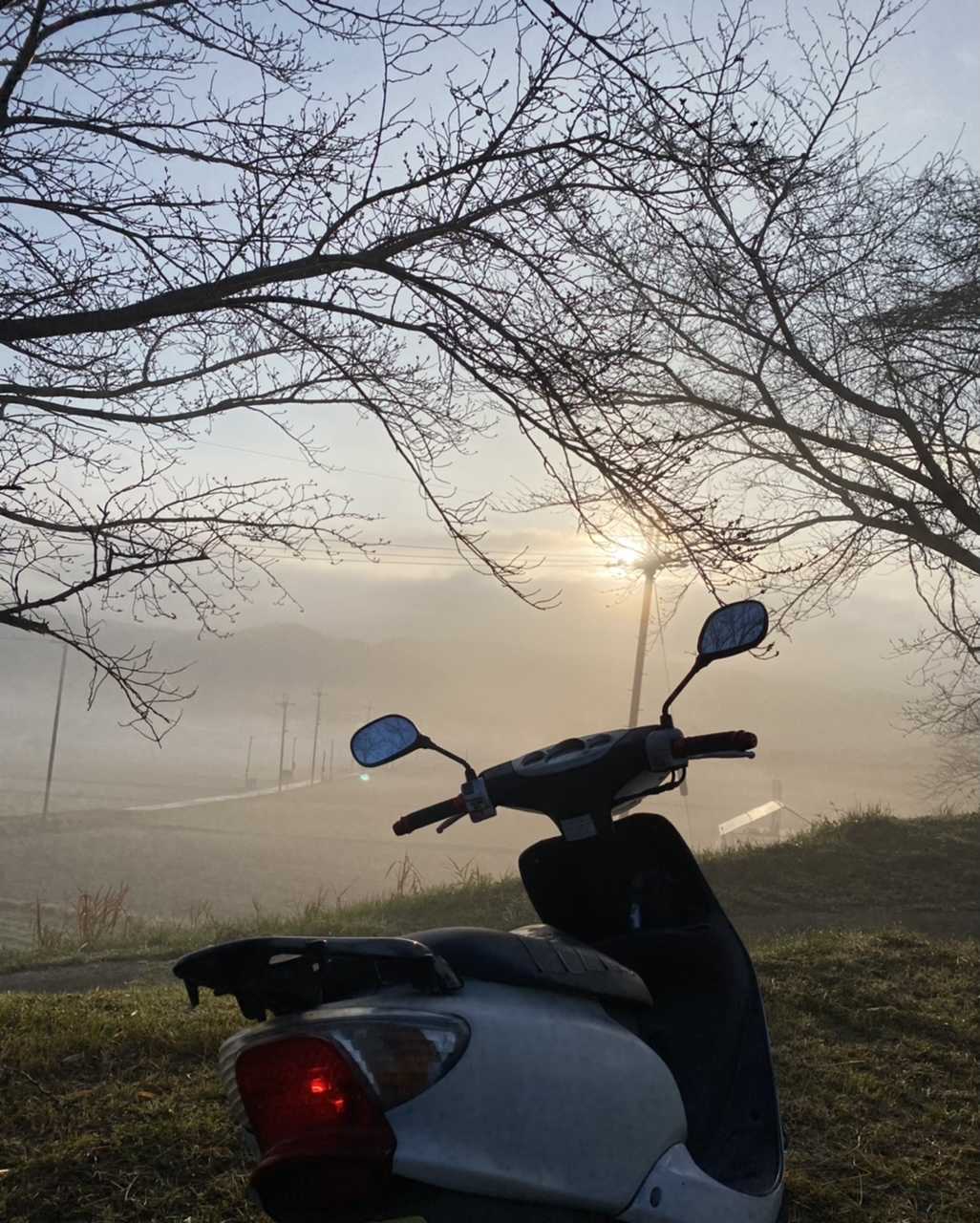 出勤します。いつもの堤防、もやってて幻想的な感じ😊