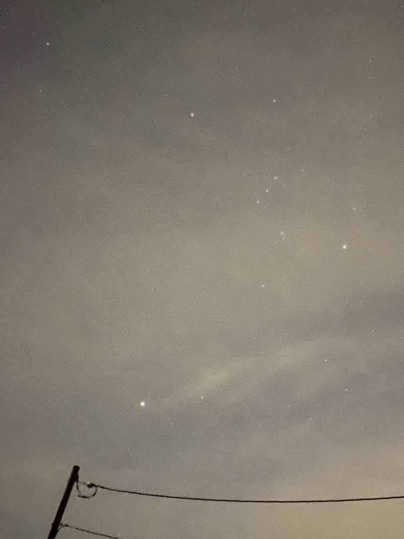 こんばんわ 今日の朝ブログ書いたのにけしてしまいました。 2回目です(笑) 昨夜、ふたご座流星群でしたっけ一番見れる日との事でさっそく寒い夜空を30分ぐらい見上げましたよ 家は、田舎・・・ではなく都会なので、星がよく見えるんですね(笑) 最近の携帯すごいです星が写せるんですから 映っている星座は何でしょう☝️ 見てもわかるように、雲が多くて雲の切れ間をみてました。 ・・・で!みえましたよ! シューってサッって3つみました。 音もなく明るい光が、シューってサッって すごいなぁ ひつこい?(笑) イメージとしては、宇宙を漂ってる隕石って言うのかな それが、地球の引力にひっぱられ 実際は、すごい音だしてボーって大気圏に突入して燃え尽きてしまうイメージをしながら 宇宙の広さを感じました ・・・変なやつ(笑) 前にもはなしたことありますが、何十年も前に和歌山の海岸で、真冬の夜に隙間ないぐらいの星がみえて、ちょうどそのときに、しし座流星群が来てて10個以上の流れ星をみたことあります あれ以来見た事ないんですが、また見てみたいなぁ すっごい南の方やからめちゃくちゃ遠いので、タイミングが難しいけど またいつか行きたいな、いや行く!絶対いく! いや行けるかなぁてな感じの優柔不断男です(笑) 昔は仲間がいたからなぁ 流れ星っていいもんですね ではまた、さよならさよならさよなら ひつこい(笑)