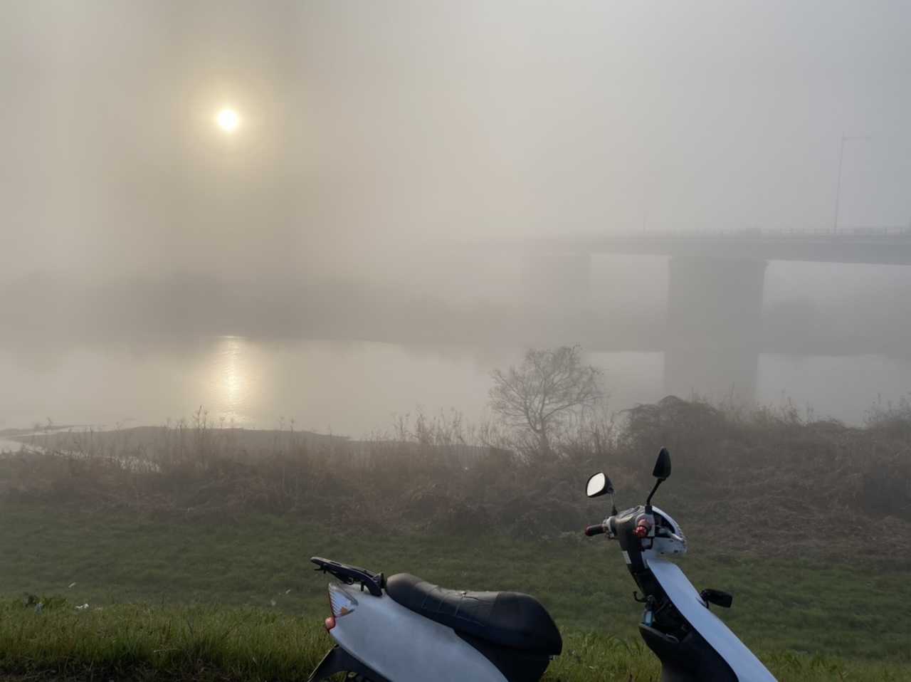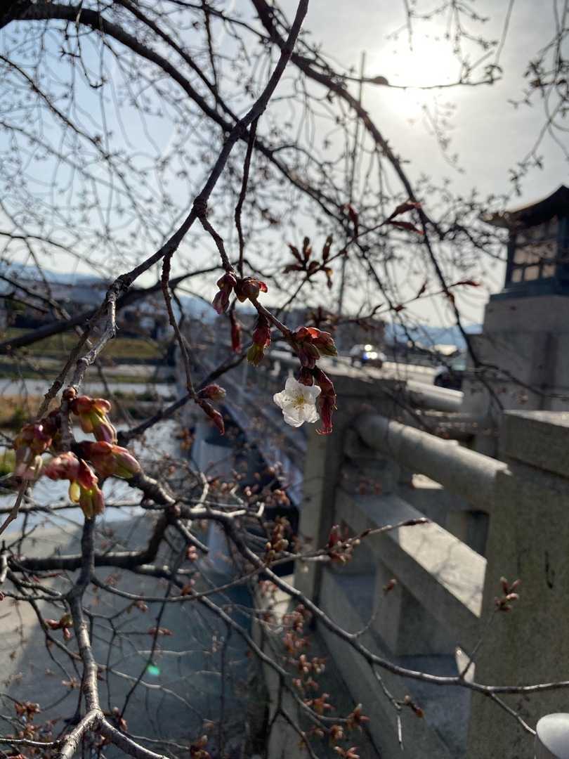おはようございます出勤します。いつもの堤防、もやってて幻想的な感じ😊昨年は、忙しくて桜あまりみれませんでした。なので、今年頑張って見てみようと思ってます。今日も、早めに家をでて桜スポット行ってきました。まだまだ蕾ですね。ついでにバイク(笑)大きい方のバイクでも撮りたいな
