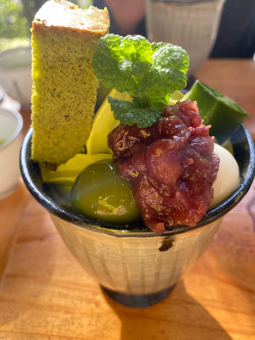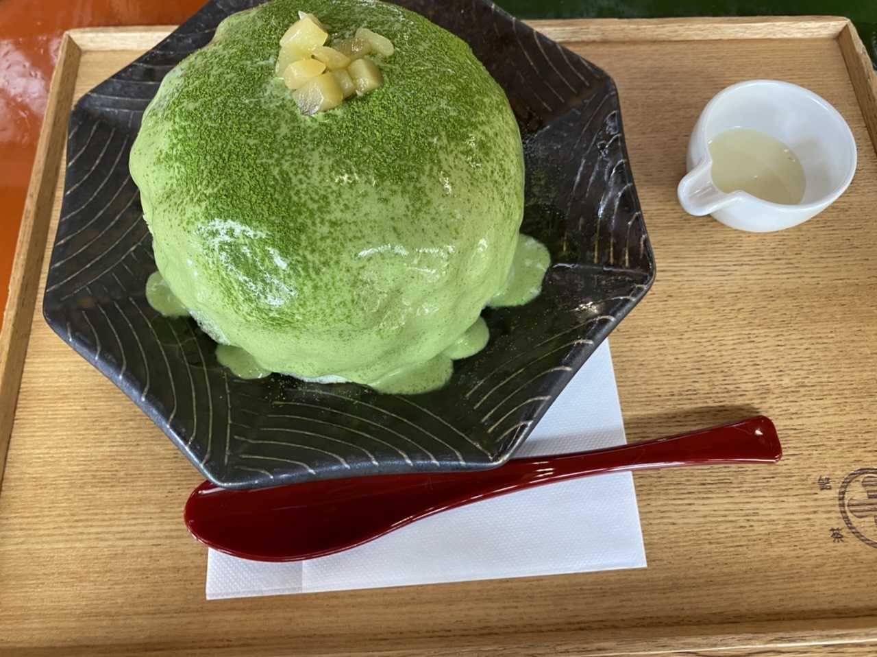 こんにちわ暑いですね😵☀️🥵暑い暑い暑い〜ということで今日は、宇治の中村藤吉にカキ氷を食べに行きました。(笑)お抹茶が沢山入ってて、うーん上品な濃い抹茶味ですかね上にちょろっとあるのは、栗です。美味しかったです。真ん中に濃厚な抹茶のアイスが入ってて、一番下には、抹茶ゼリーが入ってますこのゼリーが、お茶を飲んでいるような口溶けで美味しかったです。でも、2週間前に行った、伊藤久右衛門のカキ氷が、私には合うかも(笑)すいません、関係者の方々見てないか(笑)と、いうのは上に抹茶がたっぷり入った生クリームが乗ってて甘くて氷と相性抜群でした。その上に、豆が乗っているのですが、それが甘くて美味しい😆そしてなんと、まんなかに、抹茶の大福饅頭が入っててめちゃくちゃ美味かったもう一回食べるとしたら、後者かなぁ😁皆さんも是非食べに行ってください👍