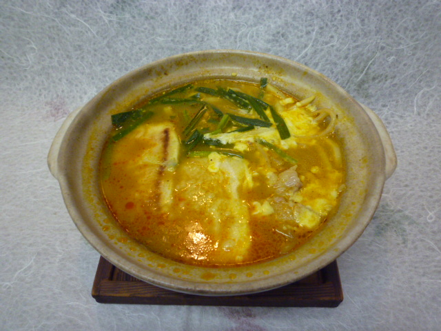 こんにちは、今度新発売する新メニュー「もっチーズカレー鍋うどん」を発表します。中には、メインの餅。そして、その脇にはシャキシャキの韮と、もやし。あとは、チーズをたっぷり上に乗せて出来上がり超美味そうです18日から販売開始です値段は、¥870ハーフサイズもあります(-¥210)そして、何とライス小、追加しておじやに期待は裏切りません。ぜひ、お試しあれ