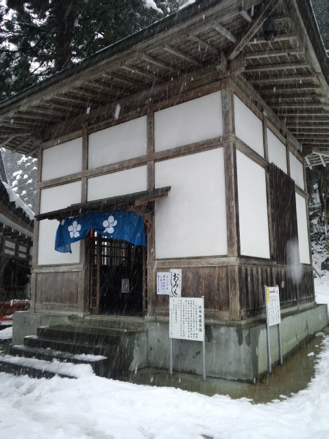 今朝から雪模様で、行くか迷ったのですが・・・・・プチ旅行決行という事で、大岩不動「日石寺」へ行って来ました。当初の予想通り、立山町への道は雪深く、高速道路は慎重に運転なんとか無事、到着まずは、延命地蔵菩薩にお参りこれだけ大きいと、前に立っただけで背筋がシャンとするねそのあと本殿へ本殿も雪深いや中へ入ると石面に不動明王が、こちらをギョロリと睨んで下ります(怖い)岩肌に不動明王彫ったんですよ、岩肌に昔の人は凄い所に彫ったもんだなぁここ日石寺は、富山県を代表するパワースポットこんな雪の日にも、ちらほらと参拝客の方がいらっしゃってましたそして、さらに奥には、六本滝。その横に目的の「藤水」が湧いております飛び散る水しぶきが、冷たい今年の暑い夏も、この水を飲んで乗り切ったのだありがとう、藤水大量の水を汲み、腹が減ったので小杉でICを下り、高岡へしゃ、ラーメンでも食べっかやっぱラーメンといえば、最近お気に入りの「椿屋」へ自分は期間限定の「極上味噌温玉チャーシューメン」(長っ)おおキャベツの千切りではないですかこれで、繊維不足も心配ないしかも、このトロトロのチャーシュー温玉を絡めて食べたら、最高期間限定って勿体なくね嫁さんは、ランチの「魚介だし風味ラーメン」と半チャーハンのセットこちらも、邪魔しない程度の良い風味が太麺にマッチ美味しあと唐揚げと餃子Wやっぱ、何回来ても美味いわまた来るよ「椿屋」さん