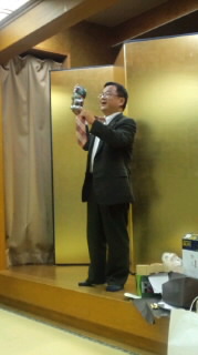 先日、北日本新聞の記者「筒口さん」が、異動になったその送別会の模様を少し・・・・・非常にひょうきんで、このブログにもコメントをくれていました仮面ライダーマニアらしく、記念品の目覚まし時計に感激してました。後任の中川 としお君。ちょっと、おとなしそうでSの血が騒ぐwそして、カレー学会からはもちろんこの人↓土居 博会長いやー、やっぱ挨拶がうまいわ。ちなみに場所は、「灘浦荘」さんで行われました。美味そうやのー。アン肝やらホタル烏賊やら旬の味覚満載やんぐじ鯛の桜餅風やったと思う鯛の淡泊な身に、アンが絡んで美味っ焼きものも団子が、春っぽいねこの後も、出るわ出るわのおいしい料理のオンパレード食べるのに必死で、画像撮り忘れました。すいません。 とにかく、後任の中川君には早く馴染んで欲しいですね。PS:地震がありました。みなさん、気をつけて行動しましょう