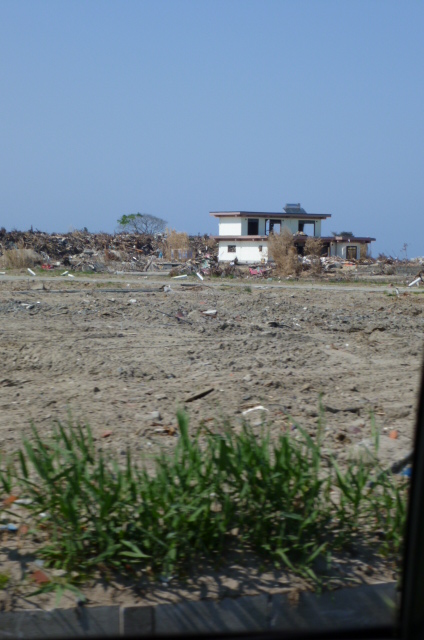さぁ、いよいよ炊き出しですみんなもレタス剥きや米とぎなど準備を進めますそして、各避難所に人員を割り振りますイベントは、もう慣れたモノで、みんなテキパキとこなしていきますお手伝いのお姉ちゃん達もがんばってくれました避難所の人たちもやはり温かい物に、喜んでくれた様でどんどん出て行き、お代りくださいと大人気いやー、避難所生活って大変ですよプライバシーなんて全くないんですもの早く仮設住宅作って、入れるようになるといいですそして、帰り際に身元不明の遺体が、公民館の脇に土葬してあると聞き、メンバーで手を合わせに行きました。山元町だけで1000人の方が、亡くなったそうですそして、帰りの準備をしバスで被害の大きかった海岸付近を案内してもらいました大きな防波堤もパカッっと割れ、骨組みだけの家。相当な被害の大きさでした。今、国会でいろいろ揉めていますが、一刻も早く被災者救援を願うばかりです。