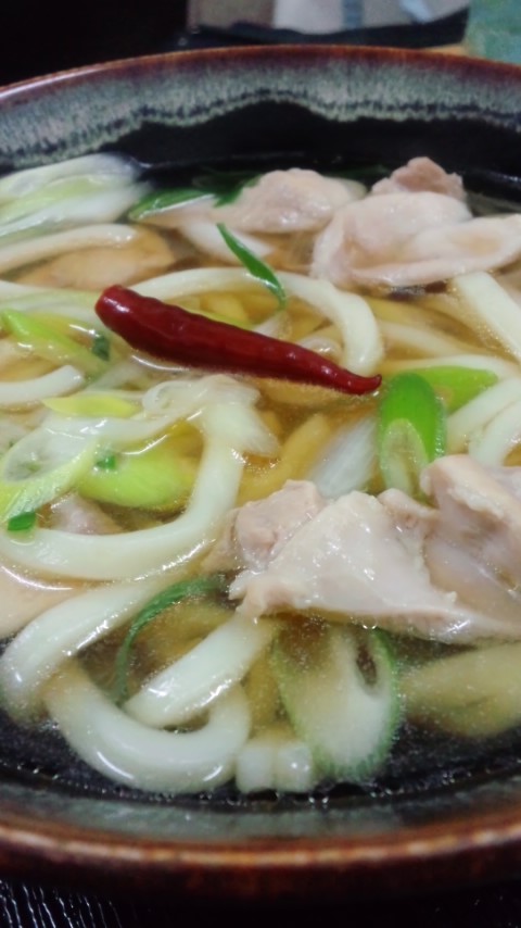 麺処 よしだやの人気メニュー「とり南蛮うどん」とっても美味しいので、是非家庭でもどうぞ(*^_^*)作り方は、まず鶏もも肉を一口大に切り、8切れとさや唐辛子を煮ます。火が通ったら、そこへ斜めに切った長ネギを一握り。仕上げにごま油を少々。ほら簡単でしょ。