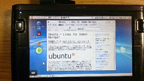 今更ながらにSHARP PC-T1を購入して、遊んでいます。システムリカバリーディスクが作れないのでいつ死んでもおかしくない状態でupgradeしています。私はいつ死んでも良い覚悟で試していますので、トライされる方は自己責任でお願いします。■まずはUbuntu9.4(Jaunty)状態でアップデート(コンソール使用) sudo aptitude update sudo aptitude safe-upgrade■次にUbuntu10.4(Lucid)にアップグレード (1)gedit /etc/apt/source.list (テキストエディターを開く) (2)deb http://old-releases.ubuntu.com/ubuntu Jaunty main universe multiverse restricted をコピペ (3)コピペした行を下記に書き換え deb http://ports.ubuntu.com/ lucid main universe multiverse restricted (4)下記2コマンドを実行 sudo aptitude update sudo aptitude safe-upgrade現在、Upgrade中です。これで死んでしまうのか?どうなるのかは待ってのお楽しみです。今回はKapperさんのブログを参考にしています。リカバリーディスク欲しいです。さすがに初心者には辛い作業です。結局やっていることはsource.listファイルの中身を書き換えているだけなのですが、すべてのPKGがダウンロードされてインストールされるのでどうなるかわかりません。ただ、まだアップデート中ですが、次はFireFoxをUpdateする気満々です。うまくいくことを祈ります。↑うまくいきませんでした。別な手法を試しています。その次は、本題のAdobe Flashインストールです。