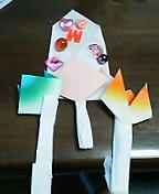今日は小学校の学童で工作の先生をしてきた。わくわくさんになった気分で(?)教えてきたサ。今日は牛乳パックで作る、「ビックリ箱」とでも言いましょうか・・・。輪ゴムを使い、箱を開けると中から次々と飛び出す牛乳パック。ある程度の所までは作っておいたので、子供達は中から飛び出す牛乳パックに色を付けたり、絵を描いたり、折り紙を貼ったりするだけ。21枚ものパックに描かなければいけないので、1枚にすごく時間を掛ける子や、あっという間に終わってしまう子など、様々だった。出来上がり、何度も箱を開け、パラパラと飛び出る様子を楽しんでいる子を見ると、来て良かったな♪と思う。工作の時間も終了し、おやつを頂き、後かたづけをして帰ってきた。10月からゴミが有料化になり、ガラクタを持ち帰って嫌な顔をされそうな工作で、お母様方には申し訳ない。本当・・・ごめんなさいぺコリ