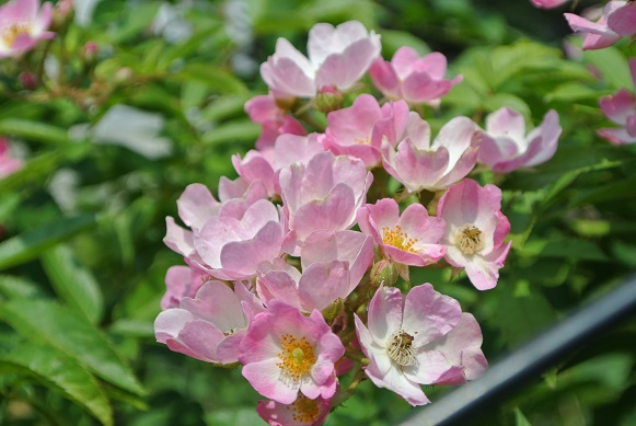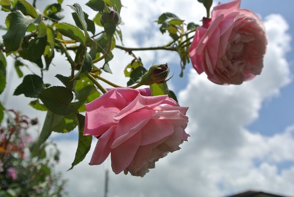 ようやく、昨日梅雨明けしました。明けた途端に、暑い一日になりました。そして、今日も暑かったです。庭師さんが、予定通り午前中殺虫剤散布をしに来てくれました。シャンテ・ロゼ・ミサトイーストガーデンは、オリーブやスモークツリーが剪定されて、お隣さんが見えるようになりました。ちょっと切り過ぎかなと思うくらい、すっきりし、明るくなりました。イーストガーデン勝手口から昨日、1日晴れたおかげで、今朝、キュウリが10本も採れ、びっくりしました。雨続きで、病気が入ったらしく、葉が、黄色くなってしまいましたが、もう少し収穫できそうです。バラも、少ししか咲いていませんが、心なしか、花色がきれいになったように思います。ホーラシャルムパシュミナ門のそばの紅枝垂れモミジのあたり紅枝垂れの下ではホスタが、白い花を咲かせていました。ホスタ(ギボウシ)とっても、涼やかですね。花色のきれいなバラを摘んで、テーブルに飾りました。ジェームズ・ギャルウェイとモンクゥール今日も遊びに来てくださって、ありがとうございます。ブログランキングに参加しています。ポチット押してくださると、ガーデニングの励みになります。にほんブログ村こちらのバラ園芸も、よろしくお願いします。にほんブログ村ありがとうございます。ホームページ更新中です。よろしかったらご覧くださいね。https://kuboniwagarden.jimdo.comお料理レシピはこちらhttps://recipe.rakuten.co.jp/mypage/1280000783/recipe/今日もお元気でお過ごしくださいね。