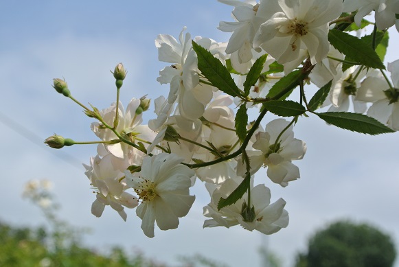 スノーグースフロントガーデンのアーチで、可愛い花を咲かせています。今朝は、フロントガーデン草取り2日目3分の1くらい、取り終りました。四季咲きで、棘が少ないので扱いやすく、丈夫なスノーグースは、初心者におすすめの品種です。何よりこの白く可愛いひらひらの花が素敵ですね。わが家で、毎年夏に活躍してくれている花は、フロックスハナシノブ科草丈 80cm~120cm原産地 北アメリカ花を切戻すと、脇芽が伸びて、花をつけます。切戻すたびに、咲いてくれるので、暑い夏の間中、咲いてくれます。あちらこちらで、咲き続けていますよ。真っ白なフロックスは、株が小さいので、貴重です。フロックス・ブルーパラダイス今年も、ソテツに花が咲きました。昨年、初めて2つ咲きましたが、それらとは違う株に、1つ咲きました。このまま咲き続けて、来春に枯れた花の中から、新葉が出てきます。昨年、花の咲いた後は、枯れるのかなぁと気をもんでいましたが、5月頃葉が出てきたので、安心しました。ムクゲフロントガーデン北西端で、白いムクゲが、涼やかに咲いていました。気温は、朝からぐんぐん上がってきています。今日も暑くなりそうです。クマ蜂とメドーセージ虫たちも、涼しい朝のうちに、お食事タイムです。今日も遊びに来てくださって、ありがとうございます。ブログランキングに参加しています。ポチット押してくださると、ガーデニングの励みになります。にほんブログ村こちらのバラ園芸も、よろしくお願いします。にほんブログ村ありがとうございます。ホームページ更新中です。よろしかったらご覧くださいね。https://kuboniwagarden.jimdo.comお料理レシピはこちらhttps://recipe.rakuten.co.jp/mypage/1280000783/recipe/今日もお元気でお過ごしくださいね。
