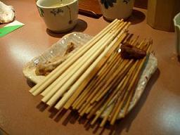 会社のお友達Iちゃん、Iちゃんの中学時代の同級生のお友達Oくんと品川で飲むことになりました。わたしとIちゃんは同い年、、、ということは、この3人は、同い年不思議だよね~、同い年ってホント、親近感が一気に増大するんだよねぇさて、本日のお店は、センスがよくセレブ系でとってもおしゃれな、Iちゃんの選択だったのですが、「あのねぇ。前から気になっていた焼き鳥屋さんなんだけど。初めて行くから様子が分からないし、そんなにきれいじゃないかもしれないよ」わたしの当初の勝手な勘違いは、本日のお店は『Oくんの選択』。男の人が選ぶ焼き鳥屋さんっていったら、ちょっとオヤジ系も入っていて庶民的できっと穴場チックな、とってもおいしい焼き鳥なんじゃないの♪??…と、オヤジギャル(死語?!)なわたしは、とっても喜んでいたのです。で、品川駅近くの雑居ビル地下にあるお店に、いざ出向いてみると、、、とっても小さくカウンター席しかないのですが、焼き鳥なのに、ワインを出していたりしてておしゃれ、清潔であたたかい、綺麗なお店なのです10本コースか8本コースかをあらかじめ選択し、マスターが次々と焼いてくれます、いちいち全部、おいしいレバーでしょう、ぼんぢりでしょう、ネギマでしょう~。おいしい焼き鳥片手に、ビールも芋焼酎も会話もたくさん弾みました。IちゃんとOくんたちの、学生時代の話を、いっぱい聞いたり。わたしは、わたしの知らない、中学時代のIちゃんの話が楽しかったしOくんは、彼が知らない、今の会社でのIちゃんの話を聞くのがとても楽しそうでした。とてもあたたかい気持ちになりました。ほんと楽しかったIちゃんと、「このお店はみんなに教えるの、やめようね」と固く誓い合いました。(いじわるな、わたしたち…)だから今回は、皆が平らげたあとのお皿しか、写真に撮りませんでしたよ!!ごちそうさま
