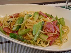 ひさしぶりに、初レシピに挑戦『アスパラガスのカルボナーラ』(材料:1人分α)スパゲッティ: 100g (お気に入りのディチェコNo.11)アスパラガス: 4本ハム: 1枚卵: 小1個パルメザンチーズ: 大2牛乳: 大1* しお、オリーブ油、あらびき黒こしょう1.アスパラガスは下側5cmの皮をむき、斜めに切る。 ハムは7~8mm幅に切る。2. ボウルに卵を割りほぐし、パルメザンチーズと牛乳を加えてよく混ぜ合わせる。3.スパゲッティをゆで、ゆで汁をとっておく。4.フライパンにオリーブ油小1を熱し、アスパラガスと水大1をいれ、フタをして 30秒炒め蒸しにする。 ゆで上げたスパゲッティとハムを入れてひと混ぜし、ゆで汁大3~4を加えてあえる。5.火を止め、2の卵駅を流し入れ、卵が固まらないように手早く混ぜ合わせ、 しお少々で味を調え、あらびき黒こしょう少々をかける。カルボナーラ、大好きなんだけど、自宅でできると思ってませんでしたの~。結構カンタンでした!おいしかったし!!奥は深そうですが。。。次回はもっと、とろ~んとクリーミィにしてみたいと思います。