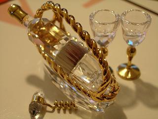 ロマンチックに... これ、ガラス細工のミニチュア・ワインセットですでもこのワイングラスで、本気でワインを飲もうと思ったらいったい、何千回、ワインを注げばいいのかしら?