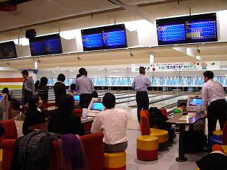1/31、うちの職場で、その『天使』のようなキャラで皆に愛され・慕われていたYちゃんが退職をしたのは、こちらでアップしていたのですが、その日の夜、Yちゃんの大・大・大送別会が行われたことは、まだお伝えしていません~。Yちゃんは、大阪の子(うちの会社は大阪に本社があり、関西弁が公用語です)関西弁にも色々あるというのは、うちの会社に来てから知りましたがYちゃんの関西弁は、聞いてると、ほわ~んと癒されるような和み系ですさて、ただでさえ、酒好きが集まるうちの職場、ふだんの飲み会と何が違ったかというと....部発足以来?!初めて、大ボーリング大会が行われたのですもちろん、事前にヒアリングがありました。今回の幹事をまかされた今年の新入社員K原くん、皆にメールを流し、「Yさんの送別会の1次会で、実はボーリング大会を検討しておりますがみなさま、いかがなものでしょうか?」... ボ、ボ、ボーリング?!だってぇーーーー大学生くらいのときには行ったような記憶があるけどぜんぜんうまくはないし、好きも嫌いも、そもそも、興味がないっ!職場の皆で行く以上、誰かがストライクとか出したら、両手をパンパンっ!てあわせる、ああいうこと、お義理でもしなくちゃいけないんでしょなんかメンドくさいよ~と、女子からは、早速、ブーイング.... でも。K原くん、一生懸命だし、彼は、女子たちにとって、とっても可愛い弟分(アイドル?)みたいな感じなので結局、最後には、みんなK原くん可愛さに?!「いいよ。」と返事をしました(ほんとか?!?)それで、ボーリング当日は、実は女子たちは結構張り切っていて、ほとんどが、ハーフパンツとかの、パンツスタイル会社を6時に上がって、一同、お台場のボーリング場にむかいました。全部で、8レーンを予約してあるそうなのです。1レーン、3~4名のチームに分かれ、優秀チーム、あとは個人優秀者が後ほど発表されることになっています。このチームは、K原くんがテキトーに振り分けたみたいです(テキトーじゃなくて、もし何か深い考えがあったら、ごめんなさい)ボーリング場に着いてみると、、、あらら、意外に楽しい感じで、テンションも上がってきました!!老若男女?!入り乱れている感じですがこれ、わたしの愛すべき職場の方々です~。ふだん、職場で見せてる顔と違って「Tリーダー、意外に、球筋切れて、上手じゃん!!!」「日ごろはバスケとかテニスが上手と自ら豪語しているKくんは、実はガーターばっかしじゃん!!」普段は職場一の変人?!(失礼....)といわれているMさんは、こんな華麗なフォームで投げていましたはずかしいけど、わたしはこんな感じでした....意外に華麗なフォーム??ちなみに、1ゲームめ:80、2ゲームめ:131 と、なんと50点もアップしたのです!皆、意外にも、とってもとっても楽しんでしまい、テンションも上がってしまい、誰かがストライクを出すたびに、喜んで自ら進んで、両手をパンパンっ!と合わせるわ、「これだったら、四半期ごとにやってもいいねぇ~~~」と大ノリノリ!いっぱい運動をしてお腹もいい具合に減ってきて、2次会の中華料理屋さん@Venus Fortに向かいました~。本日の総合優勝者、Sちゃん!が表彰されましたSちゃんは、おとなしげなキャラなのに、何をやっても上手!運動神経抜群なのです。あとはもう皆、勝手に楽しむばかり.... なぜかスタンドミーティング?をしている一団やら....本日の主役Yちゃんが、ボーリング表彰の商品、高級バナナを手に喜んでます楽しく楽しく皆で騒いだあと、Yちゃんから一人ひとりにとっても心のこもったメッセージの入ったカードと、プレゼントをいただきました。どうもありがとう!!ずっと大切にしますYちゃんいなくなるととっても寂しいけど、これからも頑張ってね&頑張るね~!!