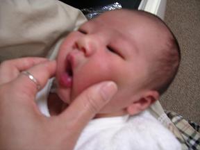 すみません… が 今日もやっぱり姪の話題今日は、新生児室から妹の部屋に移動してきたので思う存分 いじってきました~部屋に入るなり 妹が赤ちゃんを抱っこし哺乳瓶を飲ませている風景が目に入りましたそれを見たら 「ほんとにママになったんだ~!」と 感激もひとしお哺乳瓶を ぎゅ~ぎゅ~ と力いっぱい吸っていますやっぱり元気な赤子です~でも 妹はご機嫌ななめ・・・「哺乳瓶だと確実にミルクがあるもんだから 母乳に吸い付いてこないのぉ~ こんなちっちゃいくせに 要領いいよねっ」赤ちゃんを産んだお母さんは 母乳を与えるために体力をつけなくてはいけないので病院の食事も超豪華でも 母乳飲んでくれないと お母さんばかり栄養つけちゃうことになっちゃうもんね~?わたしも赤ちゃんを抱っこしました昔 飼っていたネコを抱っこするのとは違うかもしれないけど?わたしったら 意外に抱っこ上手なのか・・・?わたしの腕のなかで 赤ちゃんスヤスヤ眠っていましたベッドに移動してからも ずーーーーーっと眠り続けていましたつまんない!起きろ!と脇をくすぐったり 足の裏をくすぐったりしましたがひたすら眠られてしまいました・・・おばちゃんと一緒に遊んでよぉほっぺたつまんだら こんな面白い顔うちの妹 ちっさい頃から 人を笑わすポーズを心得ている子だったのでこの子も その血筋を受け継いでいますようにと 願う叔母です(笑)