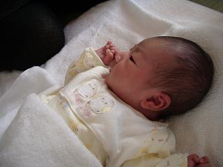 わたし 赤ちゃんって こんなにも眠るものだと思っていました5/8に産まれたばかりの わたしの可愛い姪の「マイマイ」いつ遊びに行っても ただひたすら 眠っている姿が大半ですつまんないっ と起こそうがいじろうが「かまわんといて」とばかりに ひたすら眠り続けます(全身 哺乳瓶のコスプレ?です~)大人たちがご飯を食べていても ずーーーっと眠っています義弟のお母さまが「この子はホントに手がかからないわねぇ」という意味もよくワカラズ こんなもんかと思っていましたが…友人に話すと「えーーー!それは いい子だよ~ うちのときは 何をやっても眠ってくれなかったよ 親孝行な赤ちゃんねぇ」などと 誉められる始末ってな おば馬鹿がまた炸裂ですがなんとここ数日 産まれてまだ3週間というのにこんなカメラ目線!当の本人は 何も考えてないのでしょうケド